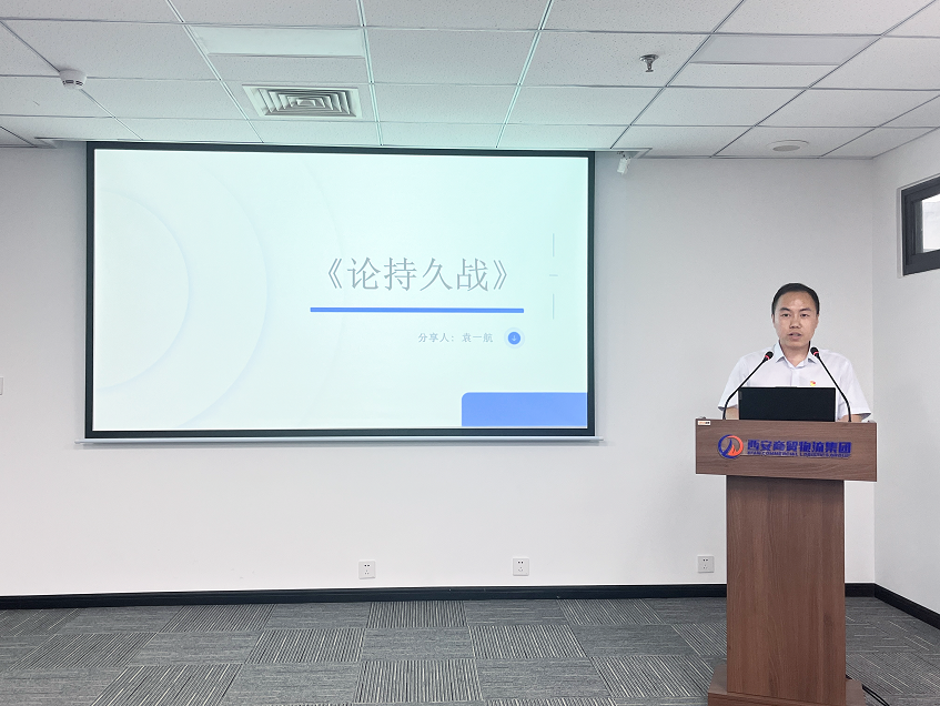 黨群部袁一航則帶來了《論持久戰(zhàn)》的分享:“這本書揭示了抗日戰(zhàn)爭的發(fā)展規(guī)律,啟發(fā)我們將有限的資源集中運(yùn)用,達(dá)成戰(zhàn)略目標(biāo),為市場競爭提供借鑒。”