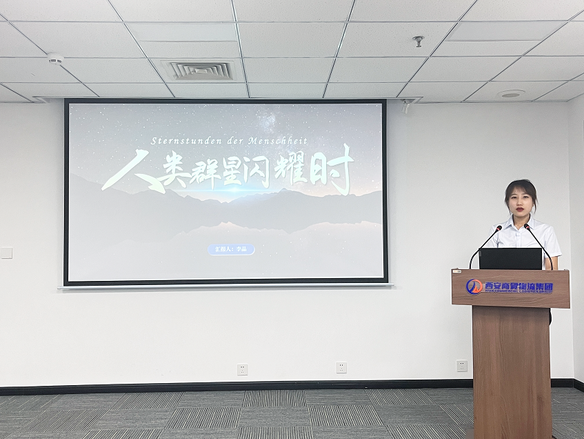 企劃部李晶分享了《人類群星閃耀時(shí)》:“書中以詩人的筆觸和史學(xué)家的眼光,展現(xiàn)了個(gè)人在歷史洪流中的渺小與偉大,傳遞出‘在困境中不放棄,勇于挑戰(zhàn)自我,挖掘自身潛力’的奮斗精神。”